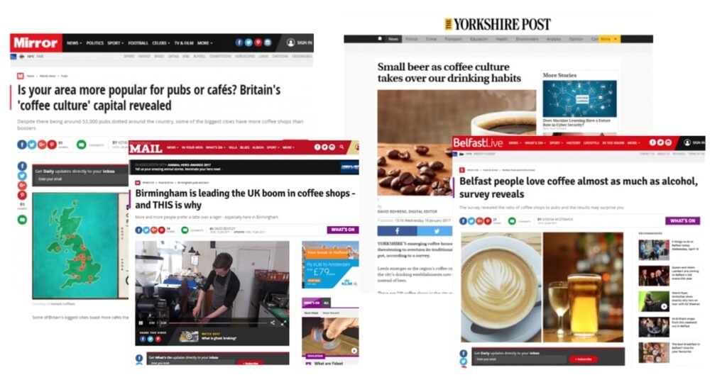 • Client one of UK’s leading coffee machine suppliers. Wanted exposure to a new audience