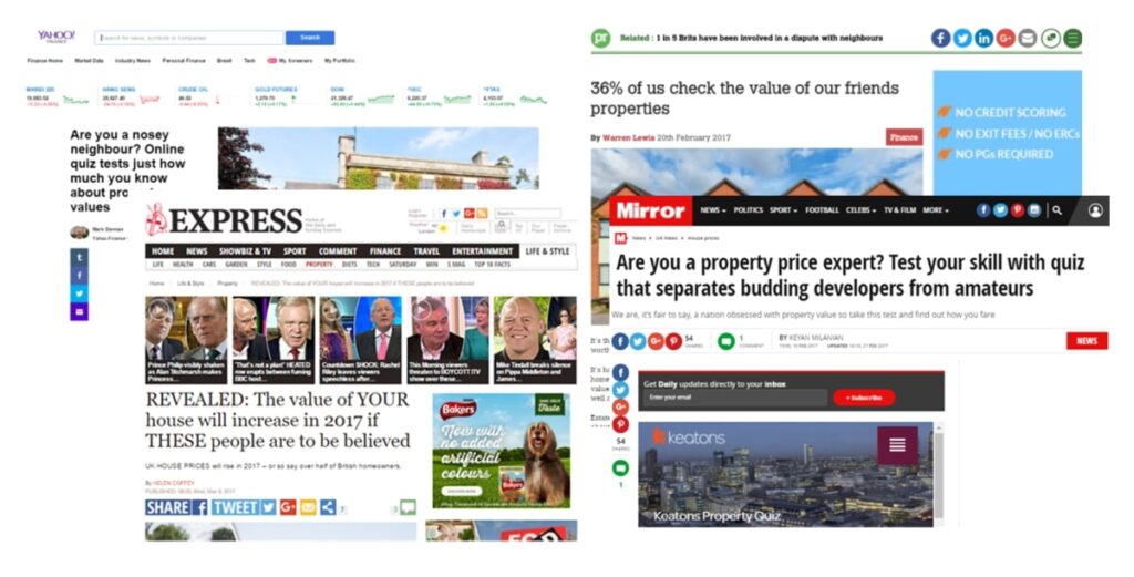 • We devised an interactive online quiz where users had to guess the price of various properties