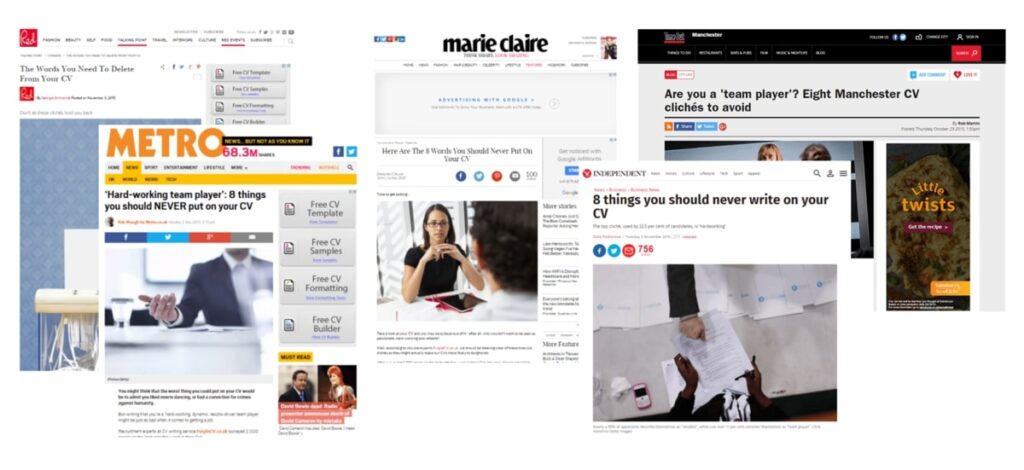 • Survey asked which cliches they had on their CVs and we wrote press release with results