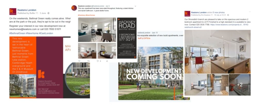 - Client a leading London estate agent. Their amount of shares and likes are both higher than the industry average on Facebook